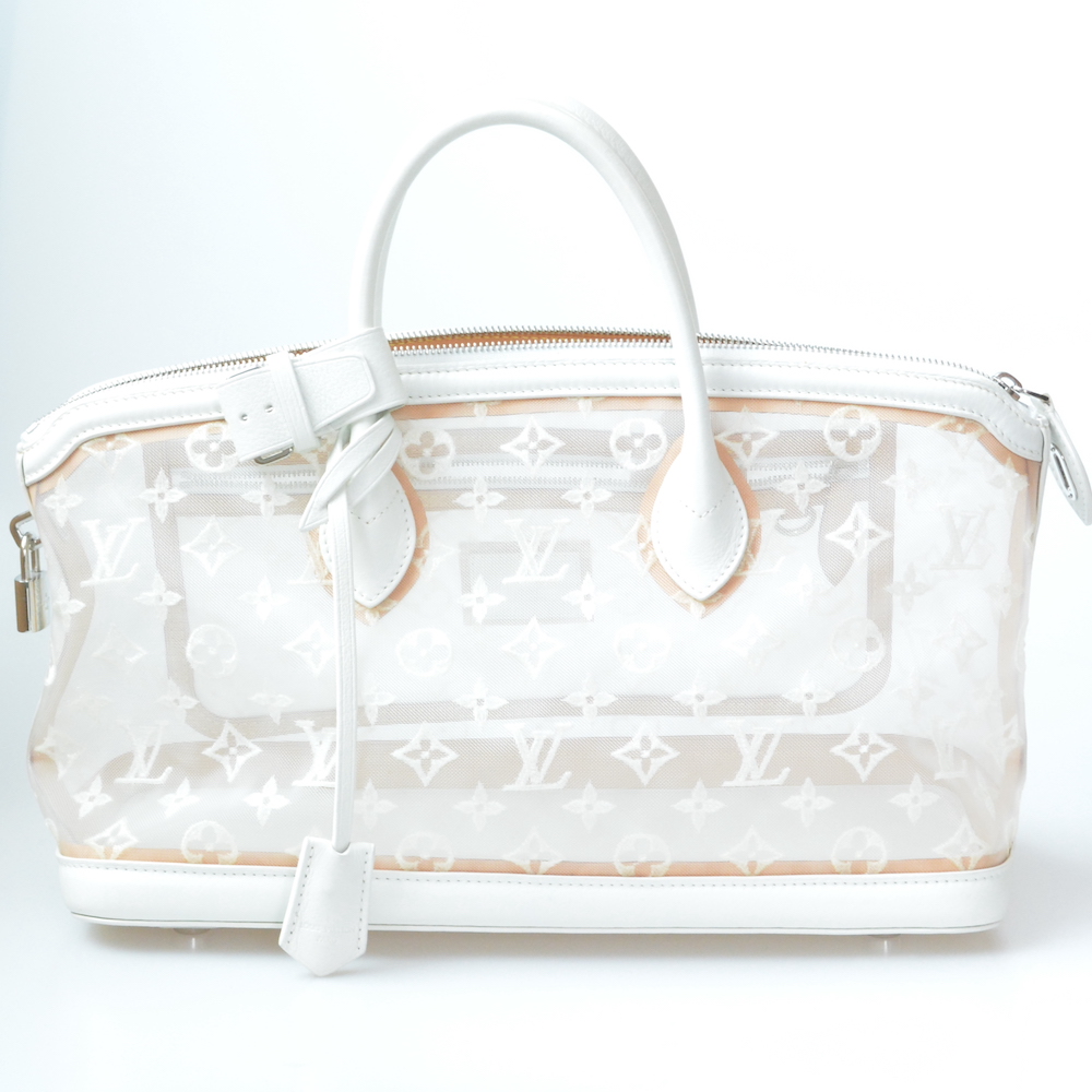ルイヴィトンのロックイットイーストウエストをお買取させていただきました。モノグラムトランスペアレンスという2012年に発売された限定ラインのお品物で今では数が少ない希少なモデルの一つとなっております。定番のモノグラム柄をレース生地のようにした質感です。今回ご依頼いただいたお品物はホワイトのロックイットをベースとしたモデルですが、ホワイトの場合は色焼けや黄ばみが発生しやすい傾向にあり中古市場でも良い状態で残っている品物はほとんどありません。状態に関しても使用回数が少ない美品ではありましたが、やや黄ばみなどが見られた点はマイナスのご評価となってしまいました。