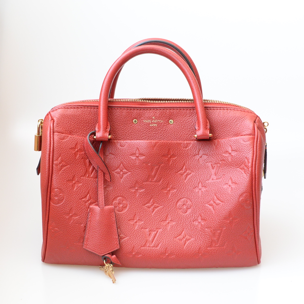 アンプラントのスピーディバンドリエール25をお買取させていただきました。アンプラントラインの品物は、モノグラムやダミエラインと比較すると、定価の高い高級ラインという位置づけです。しかしながらオールレザーの品物は擦れなども目立ちやすく、中古市場での人気は定番ラインと比較するとやや低めとなります。しかしながら今回ご依頼いただいたお品物は角のスレ以外は状態も良好でしたので、最大限ご評価させていただき10万円ちょうどでお買取させていただきました。