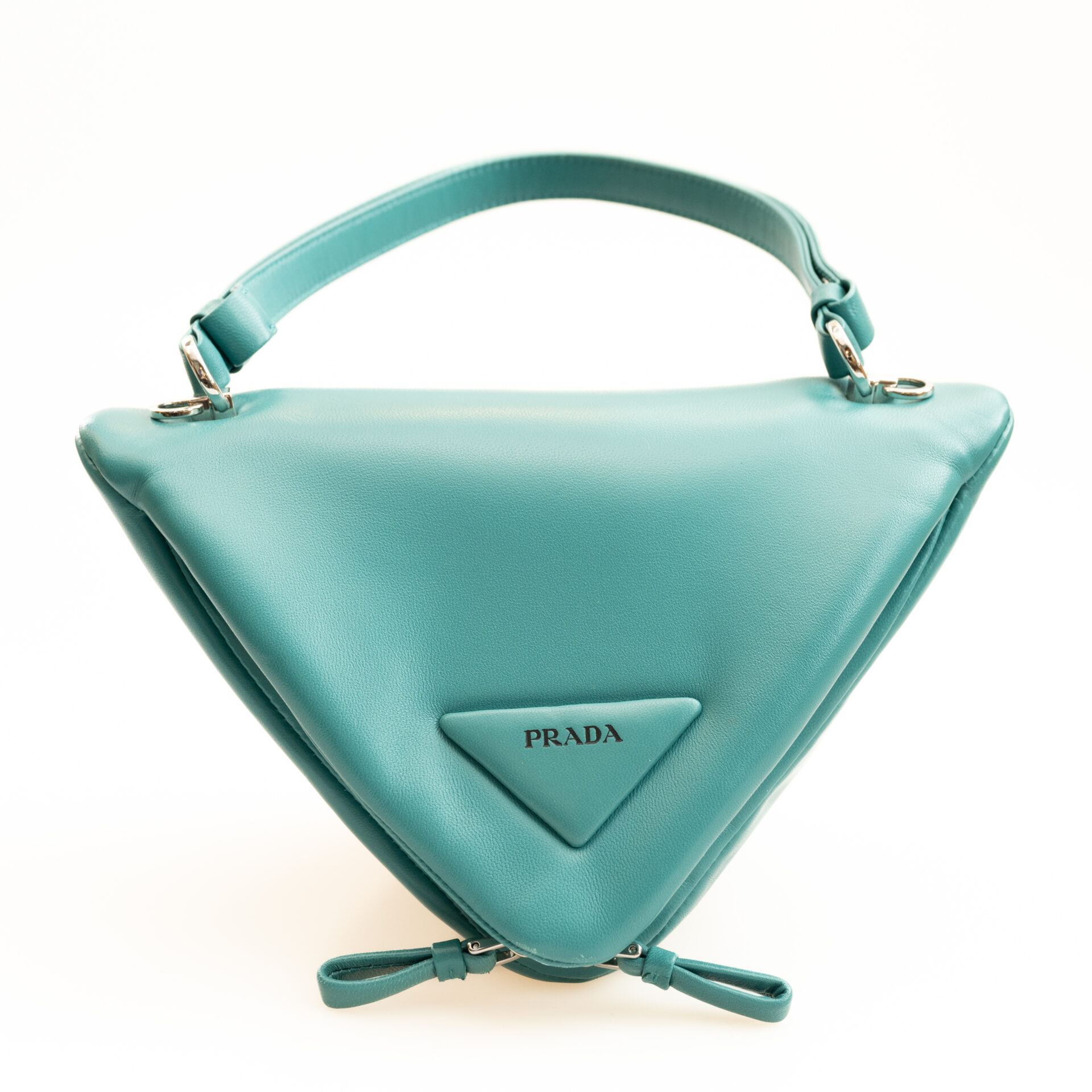 プラダのトライアングルハンドバッグをお買取させていただきました。三角形型のハンドバッグで中央にロゴプレートが配置された珍しいデザインで中古市場にもほぼ流通していないバッグの一つです。今回ご依頼いただいたお品物は使用感もほとんどなく美品とご評価させていただきました。柔らかめのナッパレザーのアイテムのため使用感が出やすい傾向にありますが、細かな小傷もなくショルダーストラップ等も揃った状態でのお査定でしたので10万円にてお買取させていただきました。
