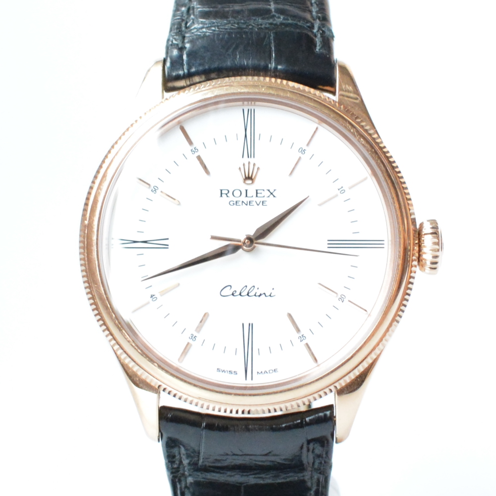 ロレックスのチェリーニタイムをお買取させていただきました。ロレックスはスポーツモデルの人気が非常に高い一方でドレスモデルは人気が低い傾向にありますが、近年ではロレックスの腕時計全体的に相場が高騰していることから、チェリーニなどのモデルも若干ではありますが買取相場が上昇しています。今回ご依頼いただいたお品物はK18ピンクゴールド素材を用いた新しめのチェリーニです。使用感があり全体的に小傷がある点や、革ベルトの部分に劣化が見られた点はマイナスポイントとなってしまいました。また保証書など付属品がない点も考慮し70万円にてお買取させていただきました。