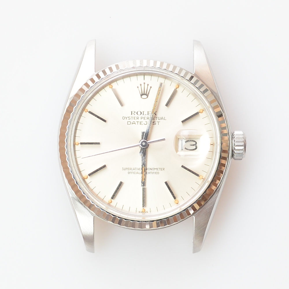 デイトジャストのメンズモデルをお買取させていただきました。ベルトは社外品に交換されていたため、ケースのみでのお査定となっております。通常ケースのみだとブランド品でもお値段が付きづらい傾向にありますが、デイトジャストなどロレックスの広く流通しているモデルに関しては、こうした難ありの場合でも高くお買取することが可能です。