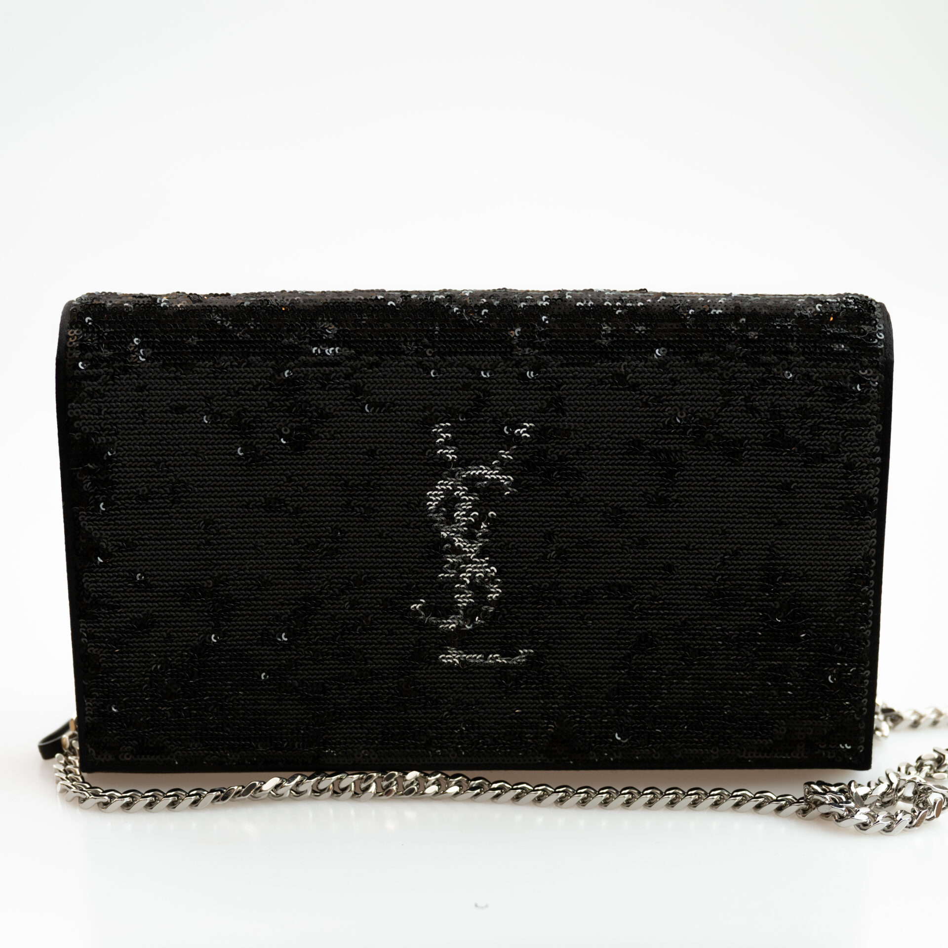 サンローランのチェーンウォレットをお買取させていただきました。中央にYSLロゴモチーフを配置したこのモデルは中古市場でも人気の高いアイテムです。今回ご依頼いただいたお品物はスパンコールを用いた珍しい品物で中古市場にもあまり流通していないモデルとなります。こうした特殊な素材のモデルは使用感によって買取価格が大きく異なる傾向にありますが、ほとんど使用感が見られずビーズ部分に欠けや劣化なども一切なかったため高くご評価させていただいております。