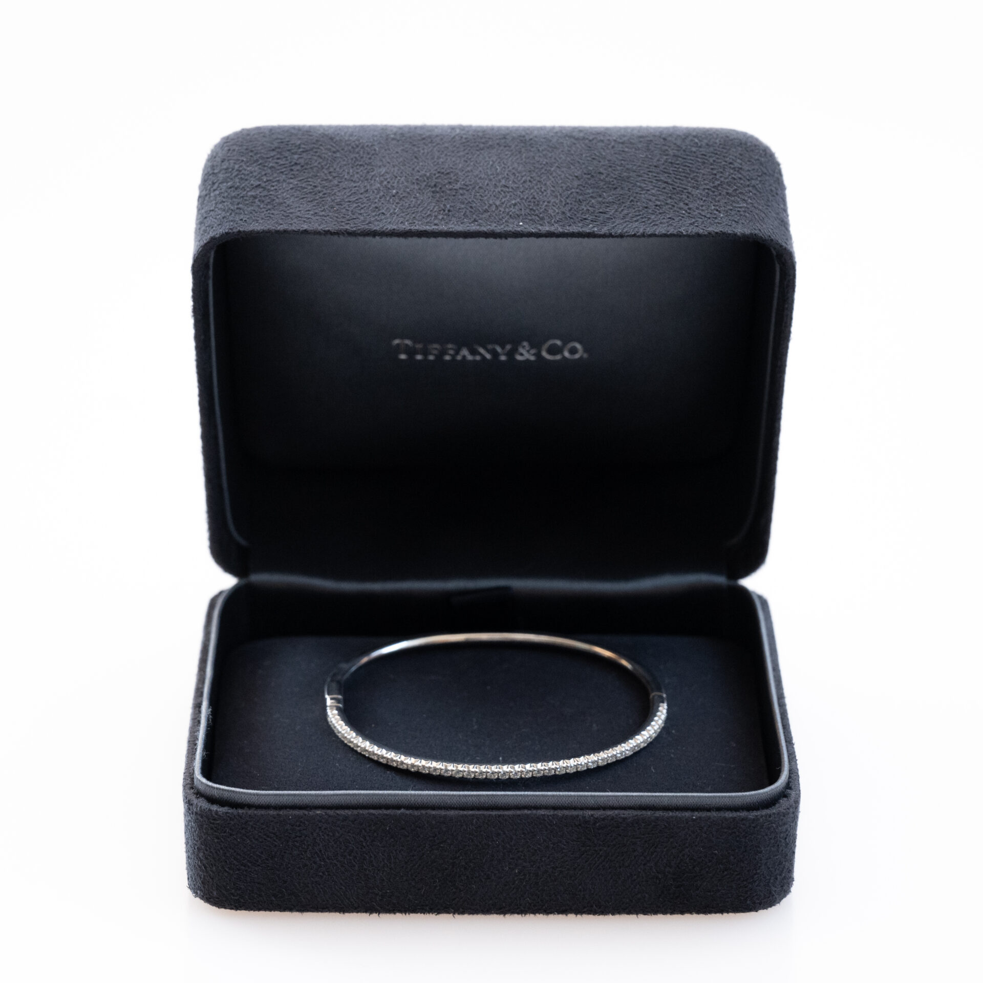 ティファニーのメトロ ヒンジ バングルをお買取させていただきました。比較的古くからあるメトロシリーズは、シンプルにダイヤモンドを配置したデザインでありながら、着用する人を選ばないティファニーの定番アイテムの一つです。今回ご依頼いただいたメトロ ヒンジ バングルは現行品でも展開されているロングセラーモデルで、中古市場でも人気のアイテムです。中古品とのことで若干の小傷などはありましたが、状態も良好と高くご評価させていただき、31万円にてお買取させていただきました。